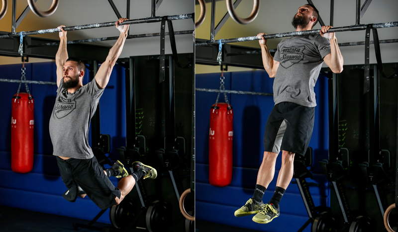 PULL-UP: ejercicio gimnástico que realizamos con el propio peso corporal colgados de una barra (autocarga). Utiliza el kipping para conseguir más repeticiones.