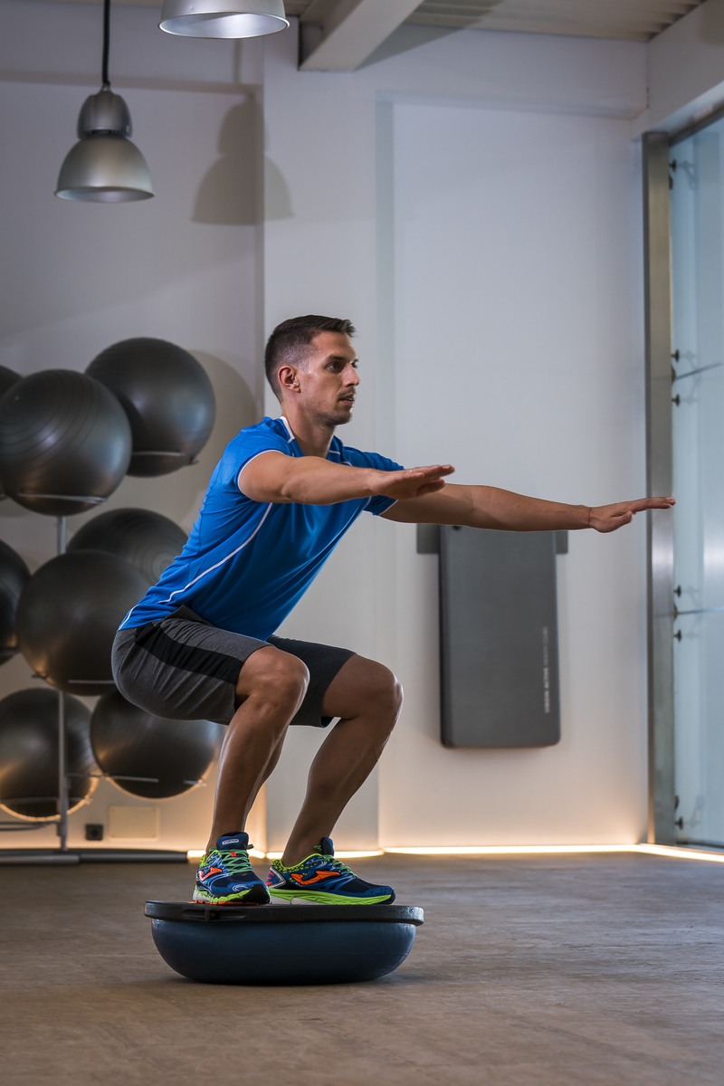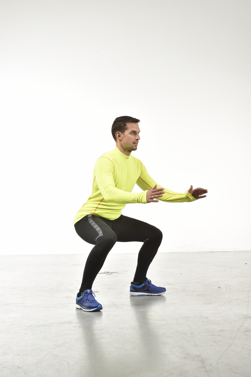 Aquí es importante que no curves la espalda y que intentes ejecutar el movimiento de forma que parezca que te vas a sentar en una silla.