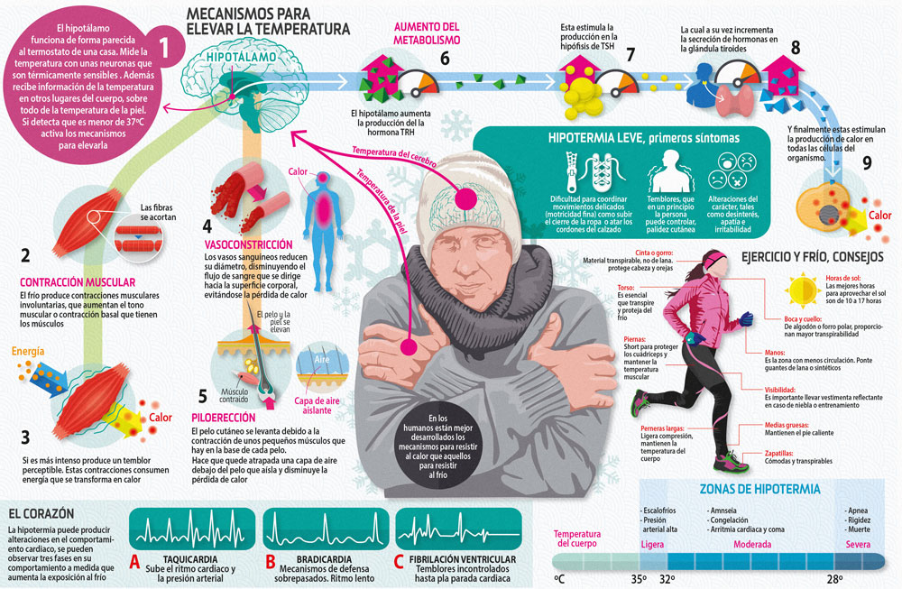 A diferencia de la mayoría de animales, los humanos estamos desprovistos de una protección térmica exterior como plumas, pelo o una gran capa de grasa, pero eso no significa que no contemos con mecanismos de adaptación al frío.