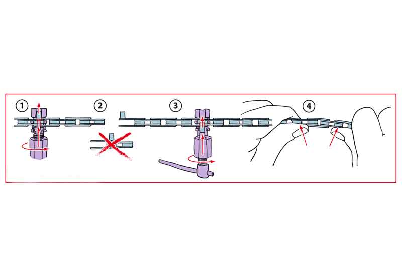 4º Muchas veces la unión queda un poco dura y la cadena no articula bien, fuerza ligeramente con la mano a los lados la cadena y se soltará.