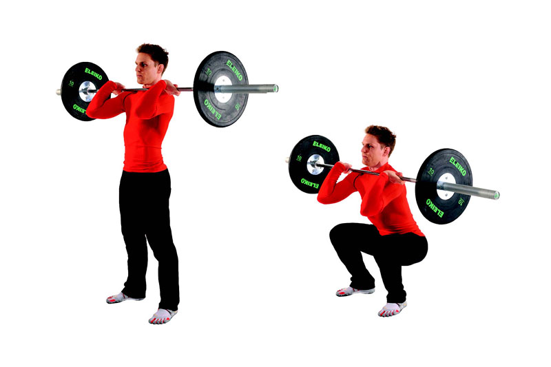 - Sentadillas frontales con barra de pesas