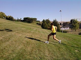 De las siete cuestas, las pares (2, 4, 6) las haremos corriendo skiping ( subir elevando mucho las rodillas , con mucha frecuencia y tirando de brazos, casi sin moverse del sitio) Las impares se hacen corriendo a tope. Si  este tipo de cuestas se hacen demasiado rápido puedes caer en una "pájara." Os aconsejo no empezar demasiado fuerte, ir progresando poco a poco.