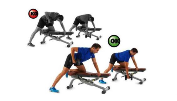 • 3. La mancuerna debe quedar cerca de la cadera, con el codo muy elevado y no cerca del hombro.