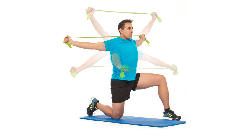 - Este ejercicio aporta fuerza y movilidad. Con un tensor realiza círculos de forma lenta. Mantener el tensor separado consigue involucrar mucho a los aductores de la escápula.