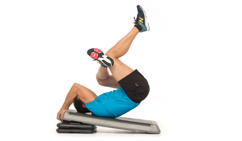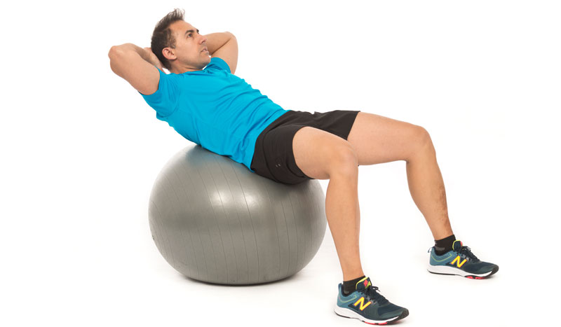 Curl estable. Mantén presionadas tus manos y eleva los hombros del suelo.