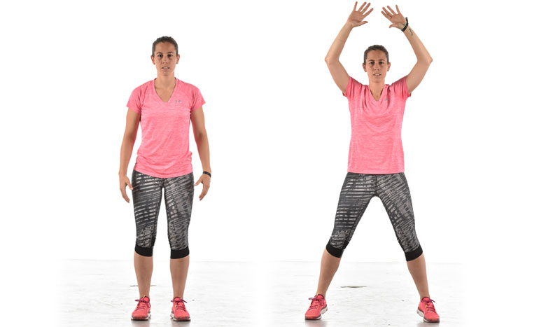 10 Sentadilla con salto 50 Jumping Jacks 10 Flexión y Rotación (por lado) 10 Tracción X con Gomas (por lado) 10 Lunge por lado