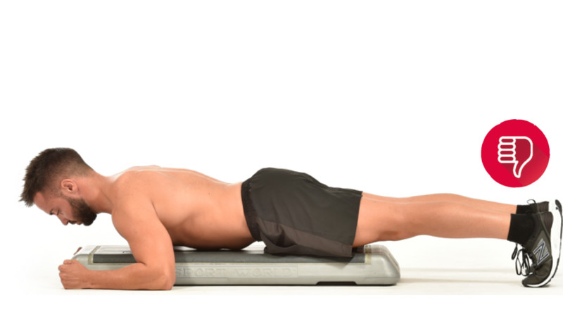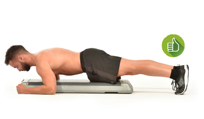 3. En caso de pérdida de fuerza o control en la pared abdominal, el cuerpo cae y el abdomen contacta con el step. En este momento debes abandonar el ejercicio.
