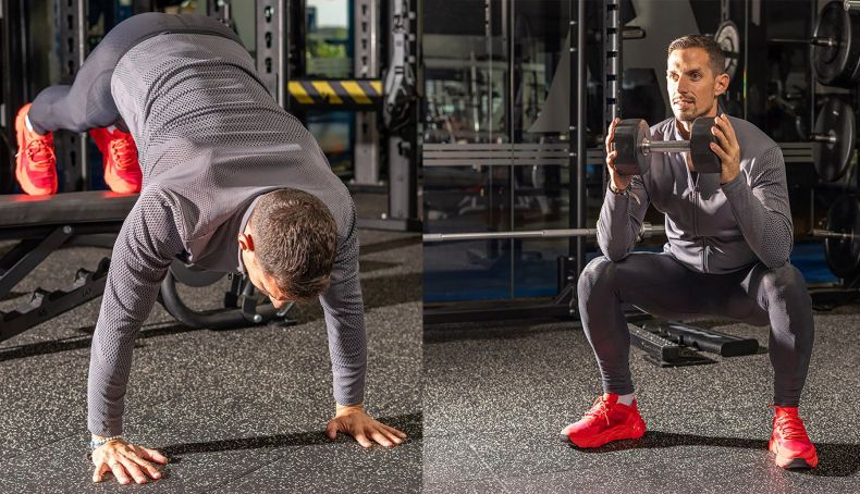 1/ Sentadilla Goblet o con mochila (Piernas)