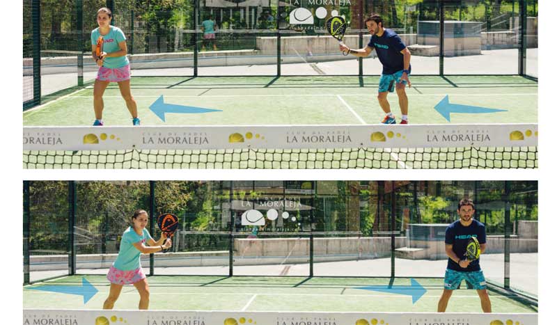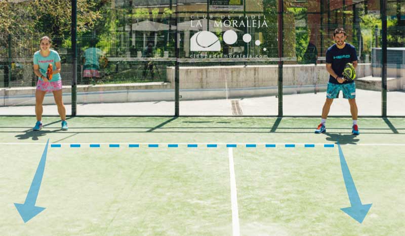 Si a nuestro compañero le toca enfrente del rival que va a golpear, se moverá para cubrir el paralelo, por lo que se echará a un lado del campo para dejar menos hueco libre. Entonces, nosotros tendremos que acoplar nuestro movimiento al suyo y acercarnos al centro de la pista para cubrir el hueco que ha dejado nuestra pareja y que no puedan ganarnos el punto lanzándonos un golpe cruzado.