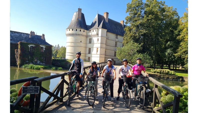 No podía ser de otra manera: el río más largo de Francia es buen amigo de las bicicletas, en sintonía con el país que atraviesa. Prueba de ello es La Loire á Vélo (El Loira en bici), una ruta cicloturista que se estira por Centro-Valle del Loira y Países del Loira, 2 de las 4 regiones que toca esta corriente desde el Macizo Central (en el sureste galo) -donde Stevenson hizo y escribió sus “Viajes con una burra”- hasta el Atlántico cercano a Nantes (en el oeste) -donde Verne nació y vislumbró viajes en globo, piróscafo, submarino, etc.-. Deseaba yo conocer el bagaje natural y cultural de esta Loire á Vélo, un proyecto que en 2025 cumple 20 años, y ese deseo iba a ser satisfecho junto con un grupo humano conformado en ocasión de la Grande Départ del Tour de Francia en Bilbao. Atout France, agencia francesa de desarrollo turístico, propició un encuentro la víspera del inicio del Tour en Euskadi y ahí me surgió esta bonita y heterogénea expedición con encantadores compañeros: María Calvo e Íñigo Pedrueza (El Giróscopo Viajero), Monika Araujo (Viajando con Mami) y Valérie Watine (responsable de prensa y RRPP de Atout France). ¡A surcar las orillas del Loira, pues!, cinco días yendo desde la ciudad de Tours hasta la de Angers.