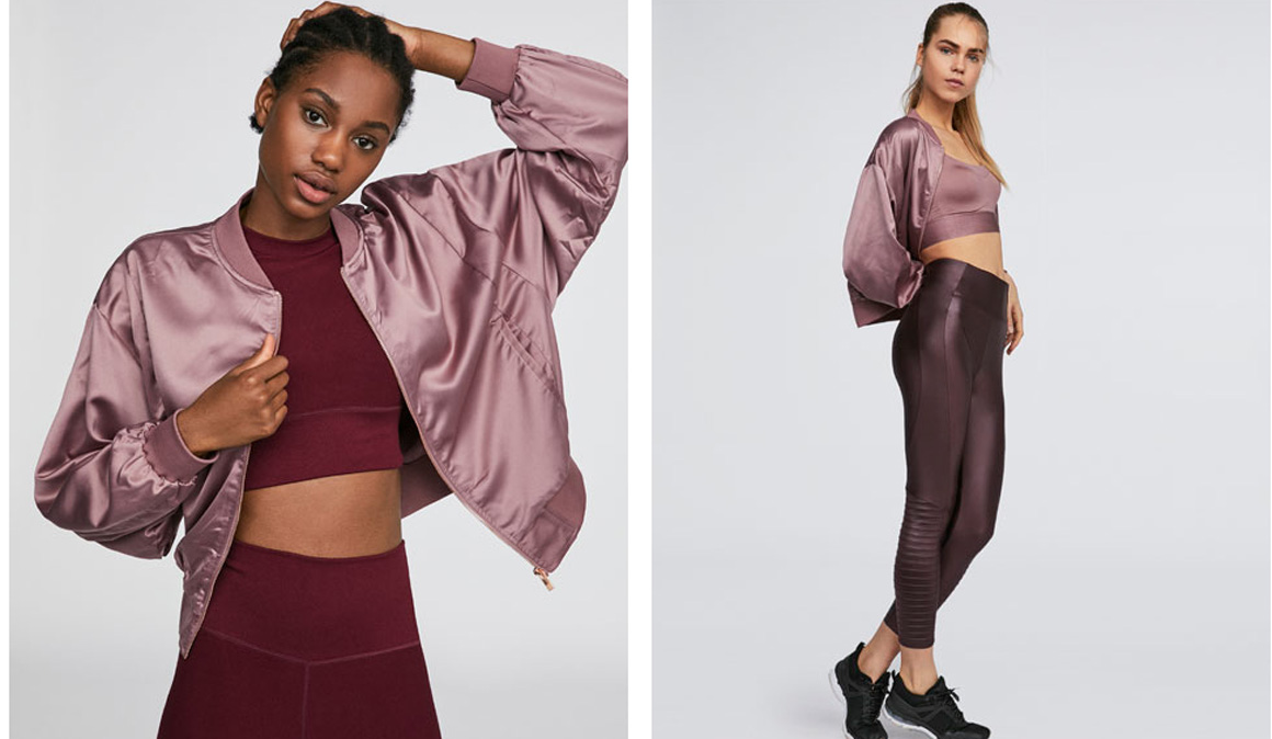 Como nuevas propuestas destacan también las prendas exteriores como la bomber con tejido brillante y los leggins de inspiración motera, para trasladar también el deporte a tu día a día y street style.