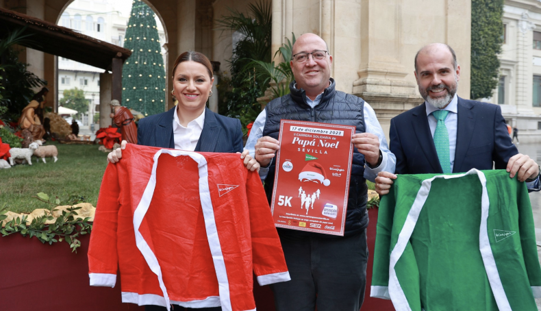 En el acto se ha desvelado cómo será el divertido y completo kit de Papá Noel (adultos) o de Elfos (niños) que recibirán todos los participantes junto al dorsal, y que incluye pantalón, cinturón, chaqueta, gorro y barba, con el que se sumarán a una gran fiesta navideña en el que no faltarán los cañones de nieve artificial, decoración navideña, un Papá Noel gigante, animación en salida y meta… Además, lado solidario es muy importante, ya que se recogerán juguetes y alimentos no perecederos en la salida de la prueba y durante la recogida de dorsales en El Corte Inglés de Nervión, y que se entregarán posteriormente a los organizadores de la “Operación Buena Gente” de Radio Sevilla.