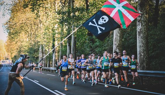 La tradicional imagen del Pirata en el recorrido de la Behobia