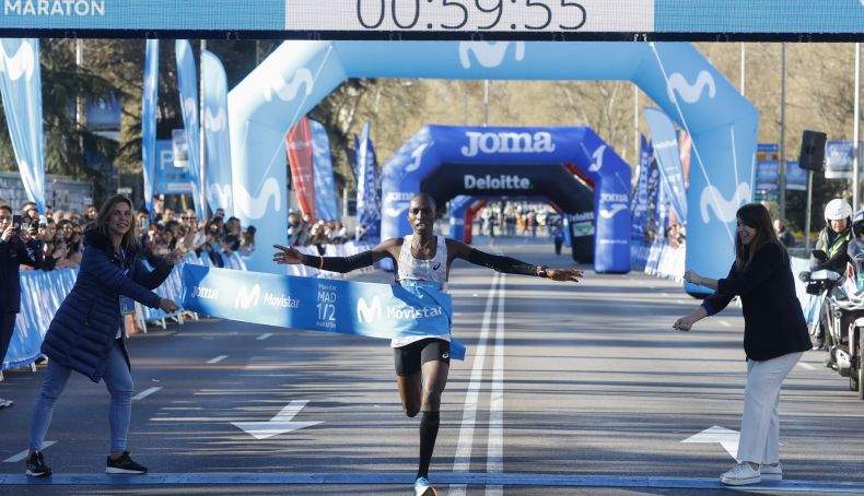 Madrid, 26 mar (EFE).- La etíope Zewditu Aderaw y el keniano Hillary Kipkoech lograron este domingo la victoria en el Madrid Medio Maratón, en la edición más internacional de su historia con 89 países representados entre los casi 19.000 participantes. El potente grupo de atletas africanos que tomó la salida volvió a demostrar que, pese a la altitud, se puede correr muy rápido en el monumental recorrido del medio maratón, que congregó a 19.000 corredores en su totalidad, contando también con la Carrera ProFuturo, de 5,8 kilómetros, que se celebró de manera paralela. El vencedor en categoría masculina del medio maratón fue el keniano Hyllary Kipkoech, que logró una gran marca, bajando de la hora (59:56), y se quedó muy cerca de su mejor marca personal. Kipkoech tomó el liderato a partir del kilómetro 10 y fue aumentando la ventaja respecto a sus perseguidores, los etíopes Tadese Takele Bikila y Tesema Mokenin Ashagre, segundo y tercero, respectivamente, a menos de un minuto del keniano en meta.