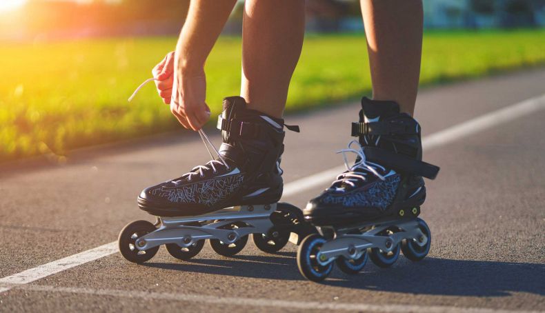 Con el fin de poder practicarse sin necesidad de hielo, se pasó en el siglo XX al uso de patines. Los mismos fueron evolucionando desde las cuatro ruedas en paralelo hasta los actuales sin frenos y con un máximo de cinco ruedas con un diámetro de máximo 110 mm, excepto para la modalidad de maratón que pueden aumentarse a 125 mm.