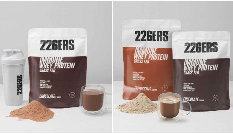 IMMUNE WHEY PROTEIN se presenta en formato doypack de 700 g, en sabores chocolate y cappuccino, ya está disponible en 226ers.
