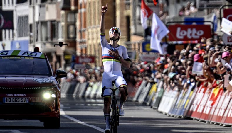 El corredor esloveno soltó a su principal contrincante en la ascensión de la Côte de la Roche - aux Faucons, a 14 kilómetros de meta, y se marchó en solitario para levantar por cuarta vez en su trayectoria los brazos como ganador del monumento.