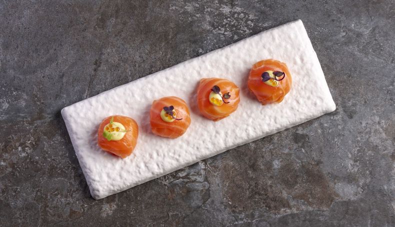 Bombones de salmón ahumado rellenos de queso cottage y mahonesa de eneldo