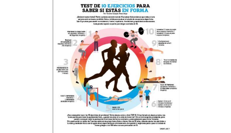 ¿Estás en buena forma? Ponte a prueba con este test de 10 pruebas físicas básicas que indica si una persona está en buena forma física, válido para evaluar el estado físico de una persona deportista.